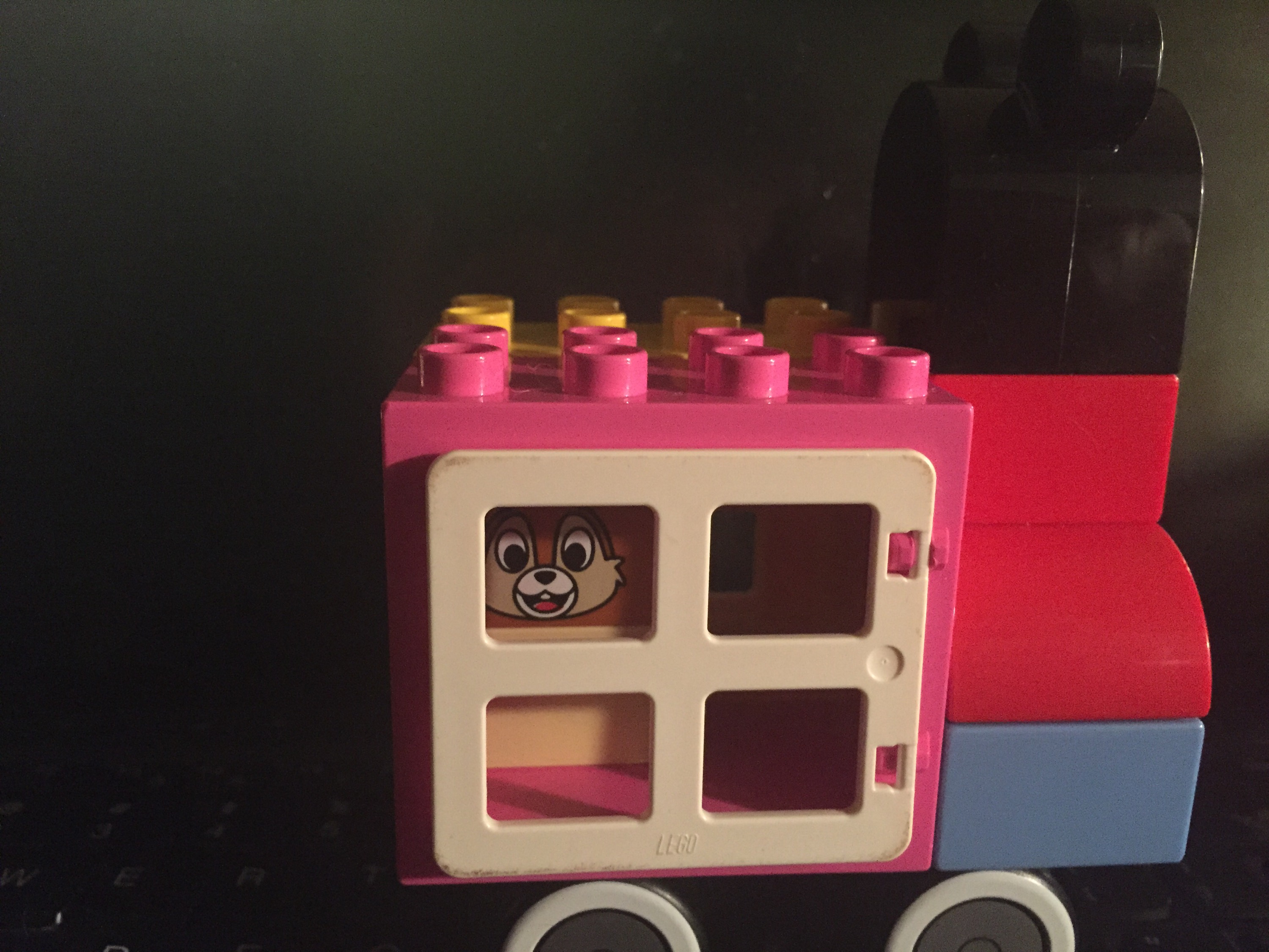 T. – Age 3.5 is becoming a Lego Duplo Junkie. He makes ships and cars and most recently something he calls a “Mickey Train,” complete with Dale the Chipmunk inside.