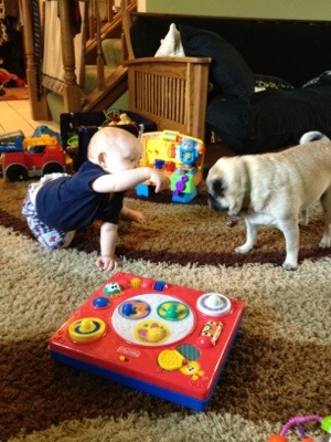 My 3-year-old daughter occasionally out-mothers her mother. She loves (most of the time, anyway) to play with her little brother.